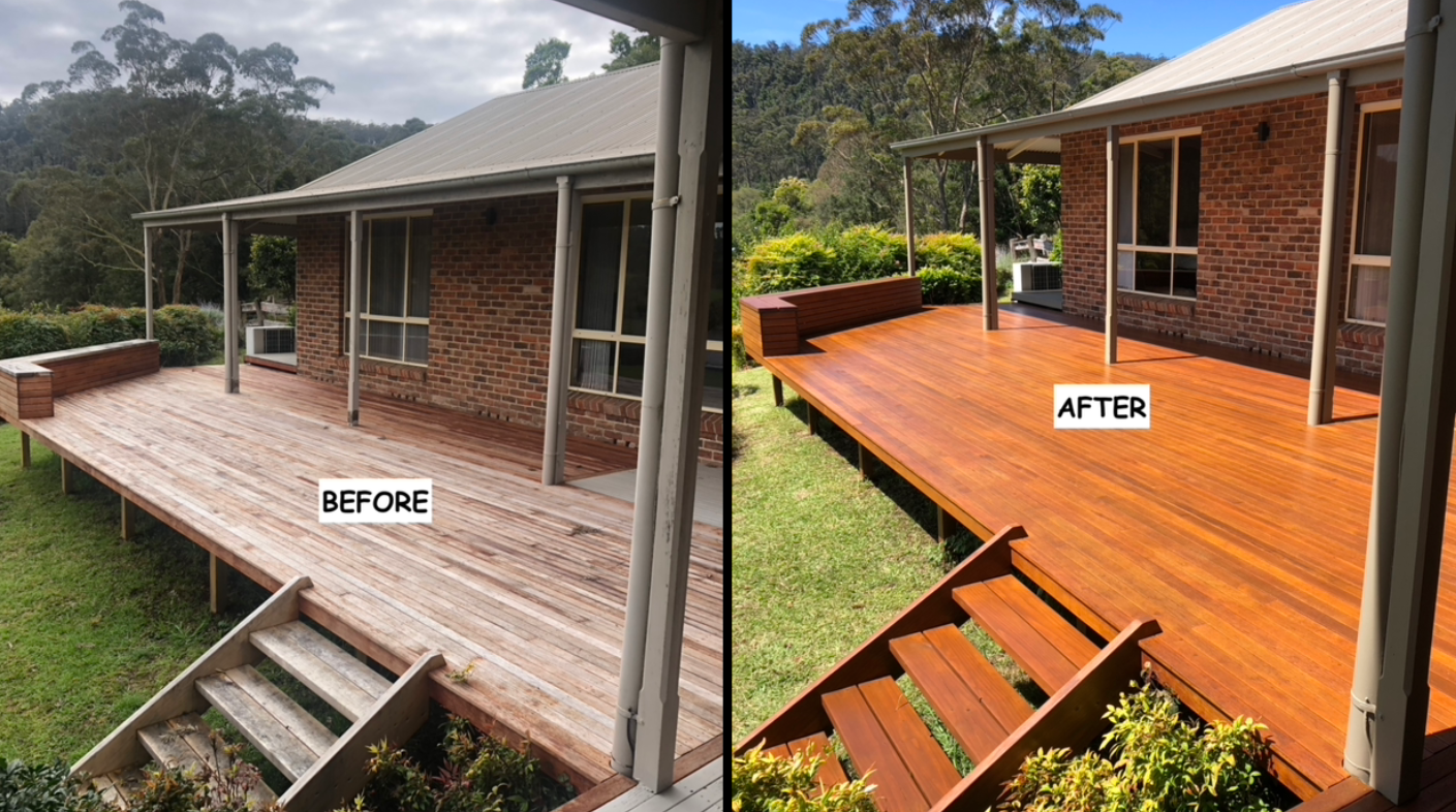 Wash, clean and re-oiling a timber deck restores the natural beauty of even the most sun drenched.